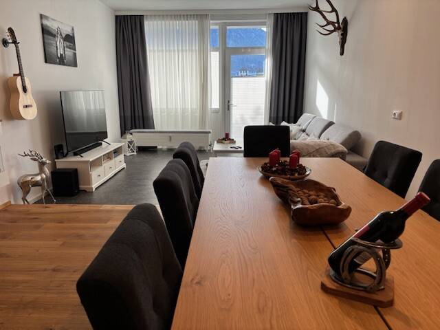 Raumprogramm: separater Eingang in den großzügigen Wohn- Essraum Hauswirtschaftsraum / Abstellraum mit Waschmaschinenanschluss Diele/Flur Bad/WC Küche Zimmer 2 Schlafzimmer Pool, Fahrradraum /Schistall; Wasch- und Trockenraum im Nachbarhaus (ausgestattet mit Waschmaschinen);Energieausweis